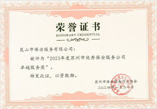 近日,安保公司下屬昆山市保安服務有限公司被蘇州市保安服務行業(yè)協(xié)會評為2023年度“蘇州市優(yōu)秀保安服務公司——卓越服務獎”,保安員張惠澤、馬小響、唐佳偉三人獲得2023年度“蘇州市優(yōu)秀保安員”榮譽。