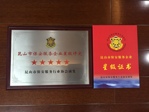 近日,在剛剛結(jié)束的昆山市保安服務企業(yè)星級評定中,昆山市保安服務有限公司以總分98.5的優(yōu)異成績榮獲了“2016年度五星級企業(yè)”榮譽稱號。