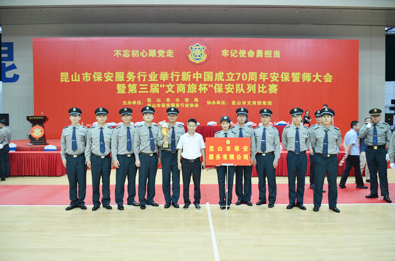 8月28日下午,昆山市保安服務(wù)有限公司參加昆山市保安服務(wù)行業(yè)協(xié)會(huì)舉辦的“新中國(guó)成立70周年安保誓師大會(huì)”暨第三屆“文商旅杯”保安列隊(duì)比賽并成功摘奪桂冠。