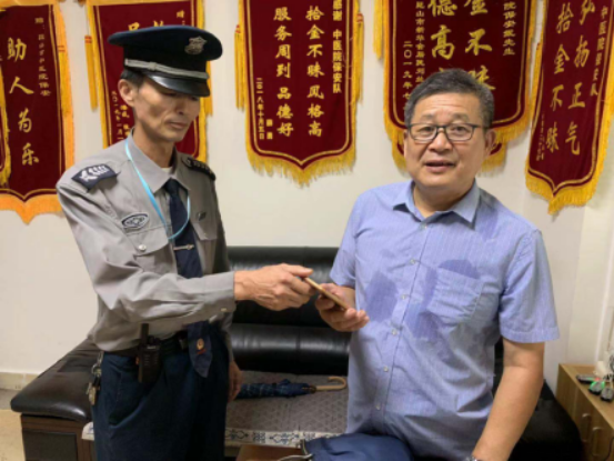 2019年8月26日上午10點左右,保安公司駐中醫(yī)院保安隊員周翠良在中醫(yī)院門診四樓候診區(qū)座椅上撿到一部手機,周翠良在周圍尋找失主無果后,將失物帶回值班室并登記。