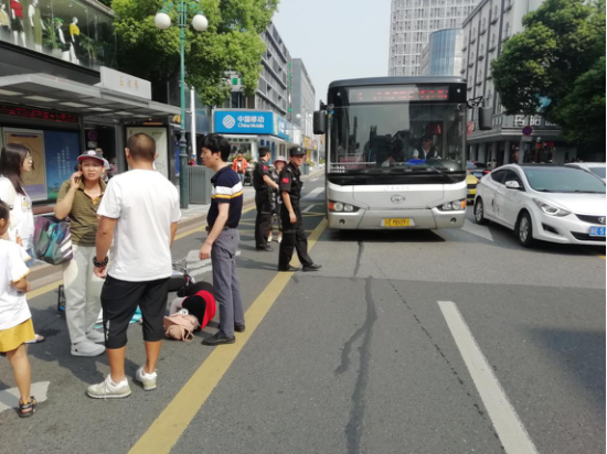 2019年9月8日上午9點(diǎn)20分左右,正陽橋北(西)邊站臺(tái)處發(fā)生一起交通事故,事故現(xiàn)場(chǎng)正在處于公交車??空军S線區(qū)域內(nèi),保安公司公交巡檢隊(duì)員在東面站臺(tái)執(zhí)勤,看到事故后第一時(shí)間趕過去查看傷員情況并維持現(xiàn)場(chǎng)秩序。