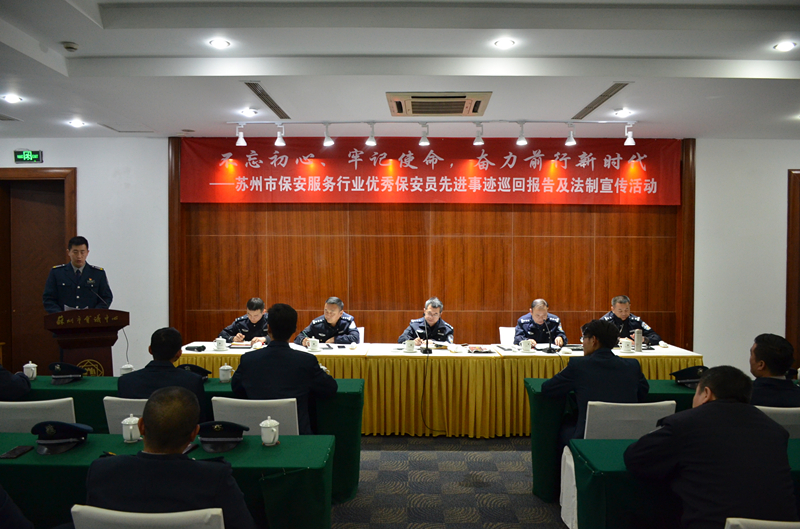 11月20日,“不忘初心、牢記使命,奮力前行新時(shí)代”蘇州市保安服務(wù)行業(yè)優(yōu)秀保安員先進(jìn)事跡巡回報(bào)告及法制宣傳活動(dòng)在蘇州市會(huì)議中心舉行,保安公司陸軍吉同志參加了此次演講,蘇州治安大隊(duì)領(lǐng)導(dǎo)出席了本次活動(dòng)。