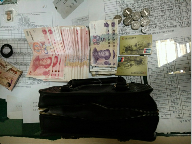 9月25日下午15:30左右,保安公司駐中醫(yī)院保安隊班長張青山在與其隊員進行例行巡邏時,在門診二收費處發(fā)現(xiàn)了一個黑色手提包,包內(nèi)有大量現(xiàn)金及銀行卡,班長張青山立即向保安隊隊長反應了情況,并將手提包交于警務室保管,隨后返回了自己的執(zhí)勤崗位。