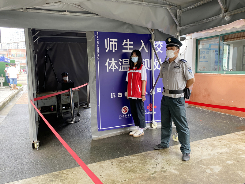 公司高度重視此次高考校園安保工作,加強(qiáng)與有關(guān)單位工作聯(lián)系,周密部署高考安保工作??键c(diǎn)安保隊(duì)員根據(jù)考點(diǎn)規(guī)劃安排,樹(shù)立考場(chǎng)指示引導(dǎo)牌、引導(dǎo)線,確??忌行蜻M(jìn)入考場(chǎng);嚴(yán)格落實(shí)各項(xiàng)防疫工作,組織隊(duì)員對(duì)校園入口、入園通道等場(chǎng)所開(kāi)展消毒工作,嚴(yán)防疫情。為了加強(qiáng)考點(diǎn)安保工作安全有序開(kāi)展,公司安全督導(dǎo)部門(mén)組織開(kāi)展校園重點(diǎn)部位安全大檢查,對(duì)保安室、打卡點(diǎn)消防設(shè)備進(jìn)行全面檢查,排除影響考試的各類(lèi)安全隱患。