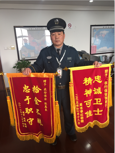 12月29日,保安公司駐農(nóng)業(yè)銀行保安員周衛(wèi)芳在執(zhí)勤時(shí),發(fā)現(xiàn)一臺ATM機(jī)上有6800元現(xiàn)金,而客戶卻不知蹤影。周衛(wèi)芳在尋找失主未果的情況下,立即將款項(xiàng)交給了銀行運(yùn)營主管,最終根據(jù)監(jiān)控找到了失主。該名客戶事后特請求銀行主管代其為周衛(wèi)芳寫了一封表揚(yáng)信以示感激。