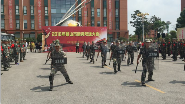 據(jù)悉,此次昆山市共有273名新兵入伍,參加本次歡送會(huì)的新兵共有100名。在歡送會(huì)中,公司民兵訓(xùn)導(dǎo)中隊(duì)為新兵們帶來了擒敵拳、警棍盾牌操等表演,隊(duì)員們精彩的表演贏得了現(xiàn)場陣陣掌聲。昆山市人武部殷珊奇部長在會(huì)后對(duì)訓(xùn)導(dǎo)中隊(duì)的表現(xiàn)特別作出了表揚(yáng)及肯定,并希望民兵訓(xùn)導(dǎo)中隊(duì)能繼續(xù)保持良好的精神風(fēng)貌,爭做昆山民兵中的特種隊(duì)伍。