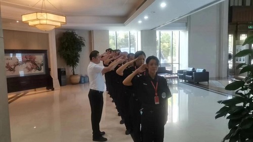 為規(guī)范農(nóng)商行保安員行為舉止和優(yōu)良作風,進一步提升隊員精氣神。9月11日,安保公司下屬昆通物業(yè)駐農(nóng)商行項目保安部開展日常隊列訓練。