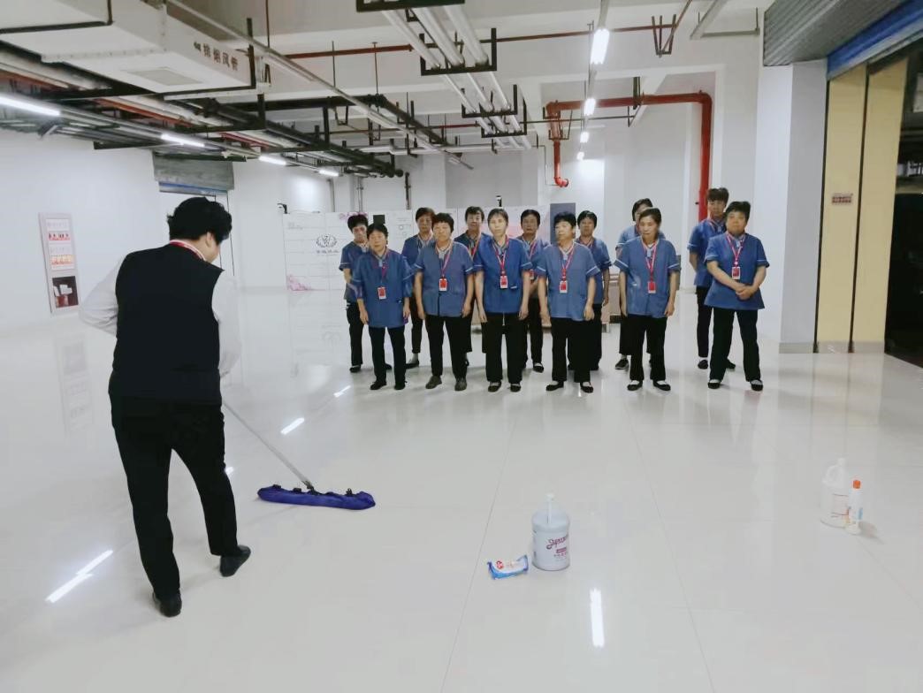 此次培訓有針對性地對保潔工具的使用方法和技巧進行講解,尤其重點講解了塵推的適用范圍、使用技巧,并根據(jù)保潔員日常工作中易錯點一一詳細糾正,采用現(xiàn)場教、實地訓的方式,逐一突破難點,重復重點,確保每位保潔員都將作業(yè)技巧、標準要求了然于心。培訓中強調了安全生產的重要性,對保潔時間、保潔頻次、保潔規(guī)范都提出了具體要求,隨后又大家講解了打掃公共區(qū)、衛(wèi)生間等區(qū)域的側重點和需要注意的地方。整個培訓過程學習氛圍濃厚,大家邊聽邊學,交流作業(yè)中遇到的問題,相互點評作業(yè)是否規(guī)范,取得了較好的學習效果。