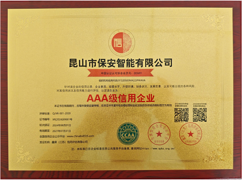 喜報(bào)!保安智能榮獲3A信用企業(yè)