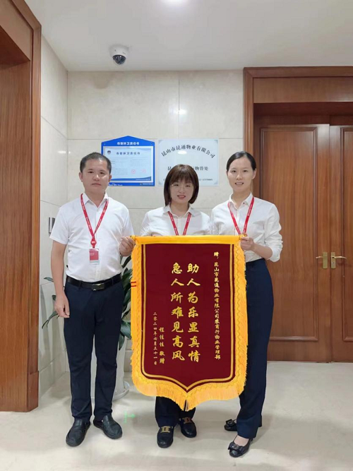 8月9日,昆通物業(yè)保安員仇國玉和楊福建像往常一樣在負責的區(qū)域巡邏,他走到南廣場快遞房門前時,一個閃閃發(fā)光的物件引起了他的注意,走近一看,竟是一只價值不菲的金手鐲。面對這意外之財,仇國玉和楊福建沒有絲毫猶豫,第一時間想到的是盡快找到失主。他們立即將金手鐲妥善保管,并向物業(yè)經(jīng)理報告了情況。隨后,通過多方努力,歷時兩天,終于聯(lián)系到了焦急萬分的失主。當失主看到失而復得的金手鐲時,激動之情溢于言表,對仇國玉和楊福建連連道謝,并送上了一面寫有“助人為樂顯真情,急人所難見高風”的錦旗。