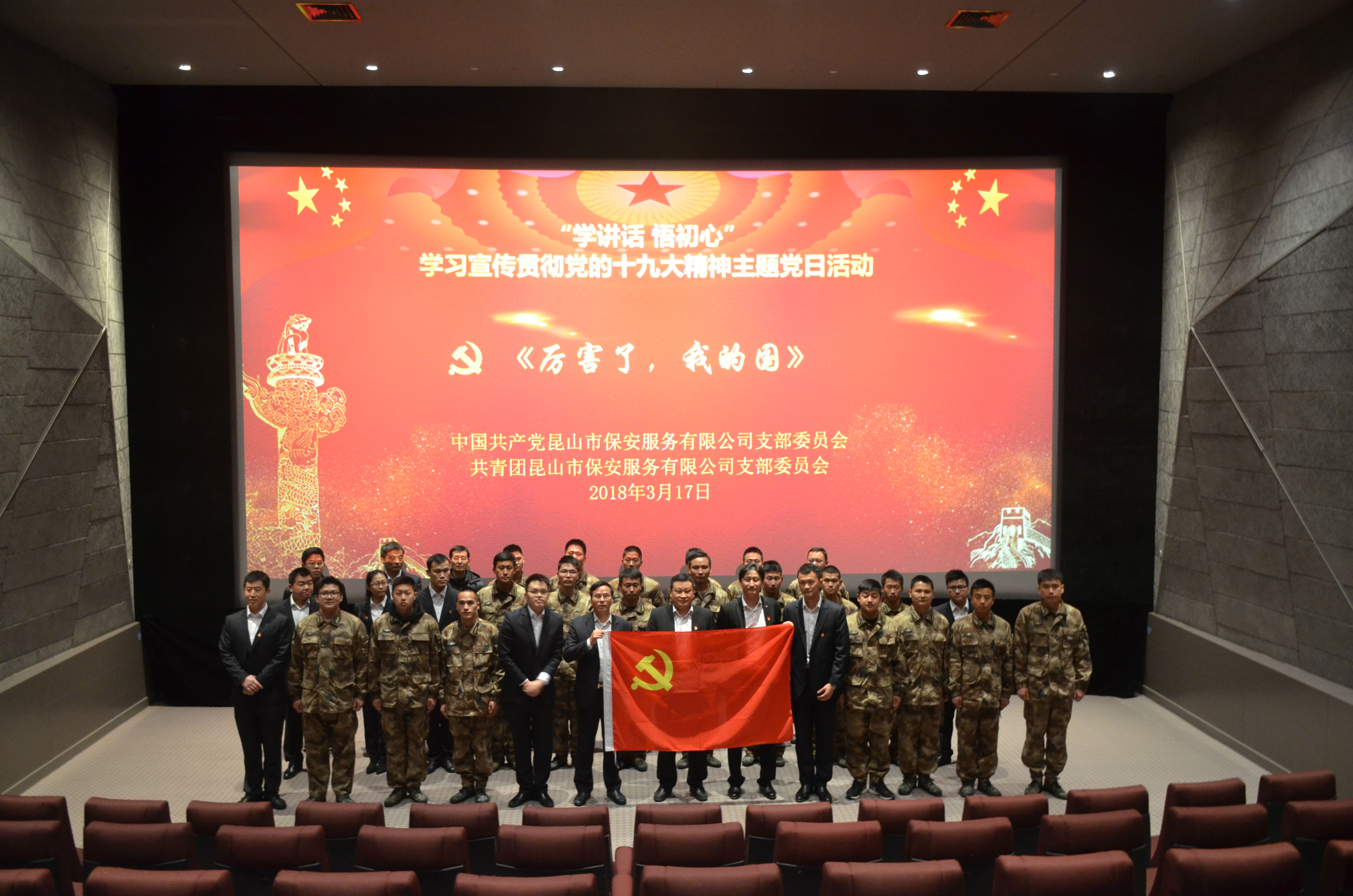 為深入貫徹落實(shí)黨的十九大精神,豐富支部主題黨日活動形式,3月17日,保安公司組織公司全體黨員、入黨積極分子、民兵訓(xùn)導(dǎo)員集中觀看電影《厲害了,我的國》。