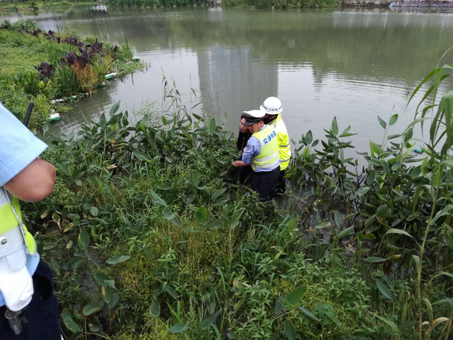 5月25日下午4點(diǎn)15分左右,保安公司道路交通指揮人員在執(zhí)勤過程中,接到指揮對(duì)講機(jī)通知,在同豐橋北側(cè)有一女子欲跳河輕生。當(dāng)班隊(duì)長立即帶領(lǐng)三名水性較好隊(duì)員前往現(xiàn)場救援。抵達(dá)現(xiàn)場后,該女子已經(jīng)跳入水中,情況十分緊急,隊(duì)員葉子濤、周長豐在隊(duì)長的指揮下,立即下水開展救援行動(dòng),經(jīng)過不懈努力,成功將輕生女子拉至岸邊。隊(duì)長鄭春明為防止此女子再度跳河,耐心的對(duì)她做思想工作,直至交警趕到現(xiàn)場將她帶走才離開。