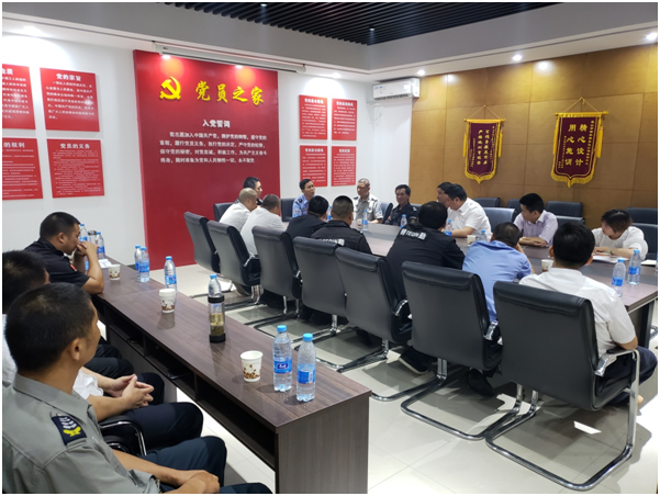 6月14日,保安公司在國防園啟動員工輪訓工作,保安服務部161名駐點保安隊長分兩批參加了此次培訓。夜間課程結束后,公司班子領導與部分駐點保安隊長召開座談會,就公司發(fā)展、內部管理、員工關懷等方面展開親切交談。保安隊長結合各自的工作性質和特點,對非機動車停放宣傳引導、中隊夜間巡查機制、員工獎懲管理、黨建人文關懷等方面提出合理化意見和建議,整個座談會氣氛熱烈,交談融洽。